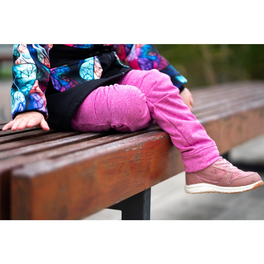 !! Střih je dělaný více na tělo avšak nejedná se o dokonale upnuté legíny jako je tomu u běžných úpletových legínek...Přesto je střih vhodný opravdu pro hubené a štíhlé děti. Pevnější postavičky by se v tomto střihu nemusely cítit pohodlně. Myslete na to při koupi těchto kalhot :)